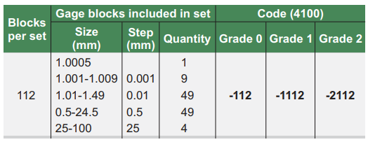 Bộ căn mẫu 112 chi tiết, cấp 2, tiêu chuẩn ISO3650, Insize 4100-2112, Dải đo: 1.0005-100mm