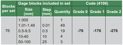 Bộ căn mẫu 76 chi tiết, cấp 1, tiêu chuẩn ISO3650, Insize 4100-176