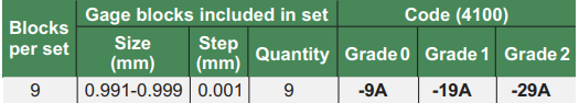 Bộ căn mẫu 9 chi tiết, cấp 0, tiêu chuẩn ISO3650, Insize 4100-9A, Dải đo: 0.991-0.999mm