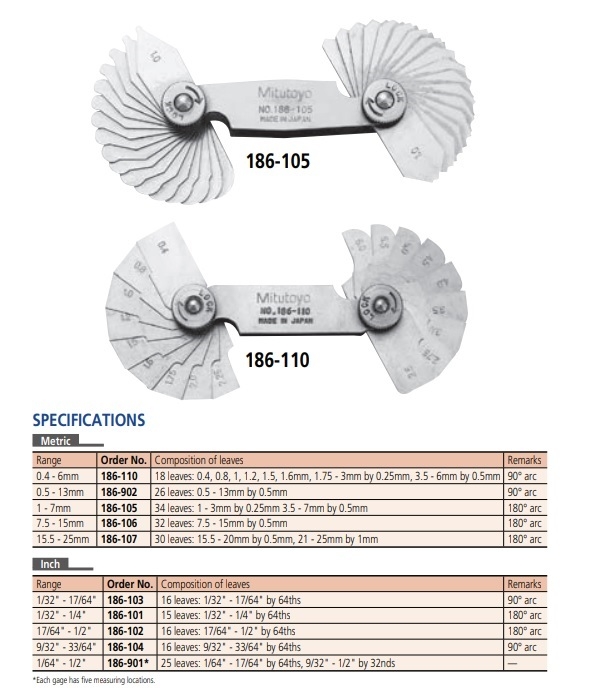 Bộ dưỡng đo bán kính 15.5-25mm (30 lá) MITUTOYO 186-107