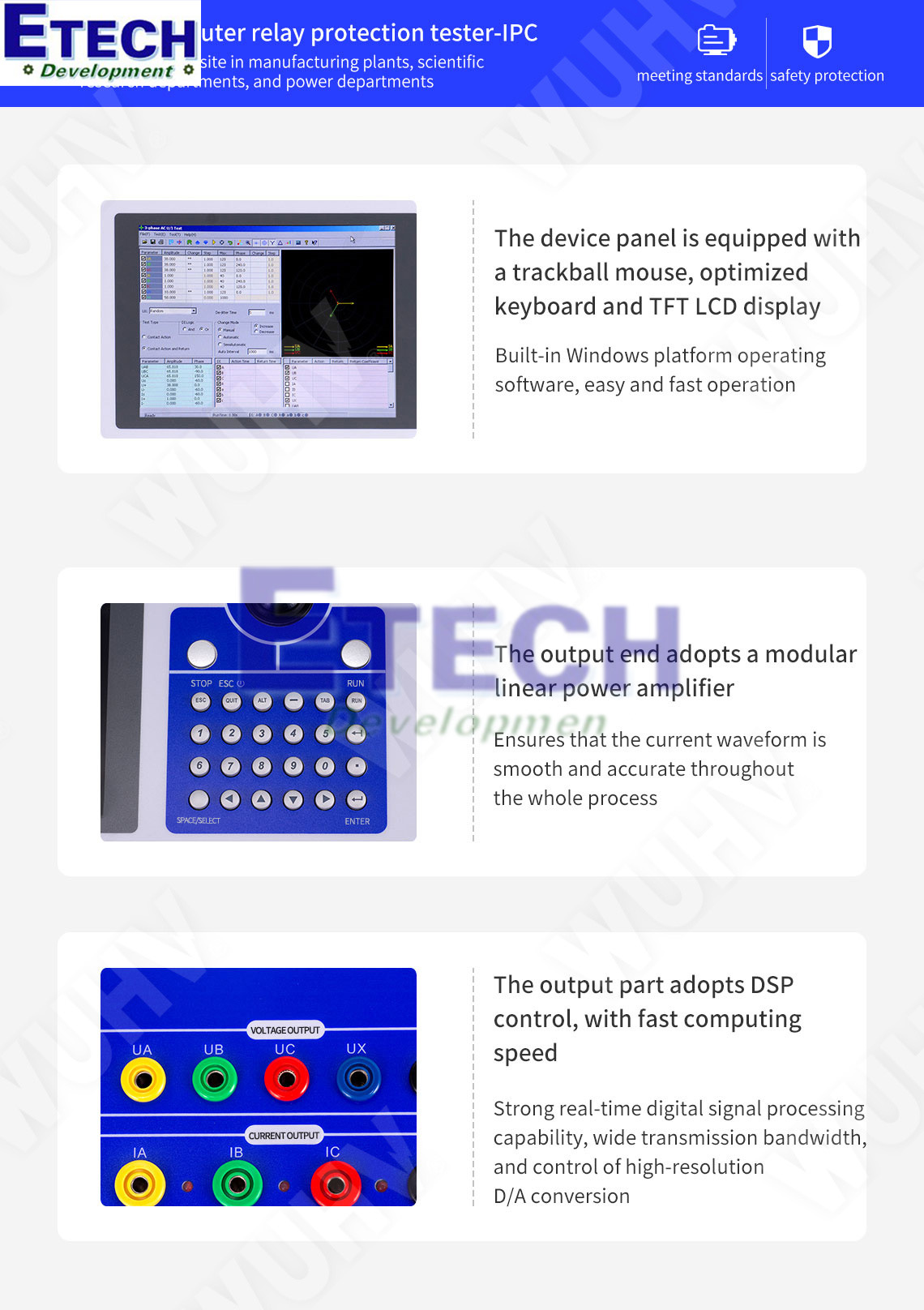 - Phần mềm siêu mạnh: thực hiện tự động mọi thử nghiệm phức tạp độ tự động hóa cao: quét định mức bảo vệ, thử vi sai, thử tái hợp闸, phát lại sự cố, vẽ vector, lưu dữ liệu realtime, in báo cáo trực tuyến…