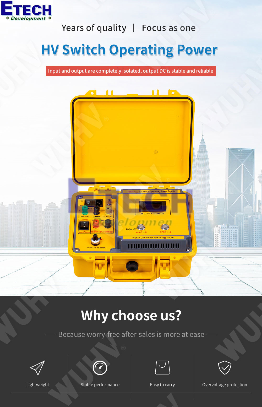 | Đặc điểm nổi bật | - Nguồn thao tác tích hợp nhỏ gọn nhất dòng UHV - Phù hợp thử thao tác điện áp thấp máy cắt & dao cách ly - Bảo vệ quá dòng, ngắn mạch tự động - Hoạt động ổn định tại trạm 500kV |