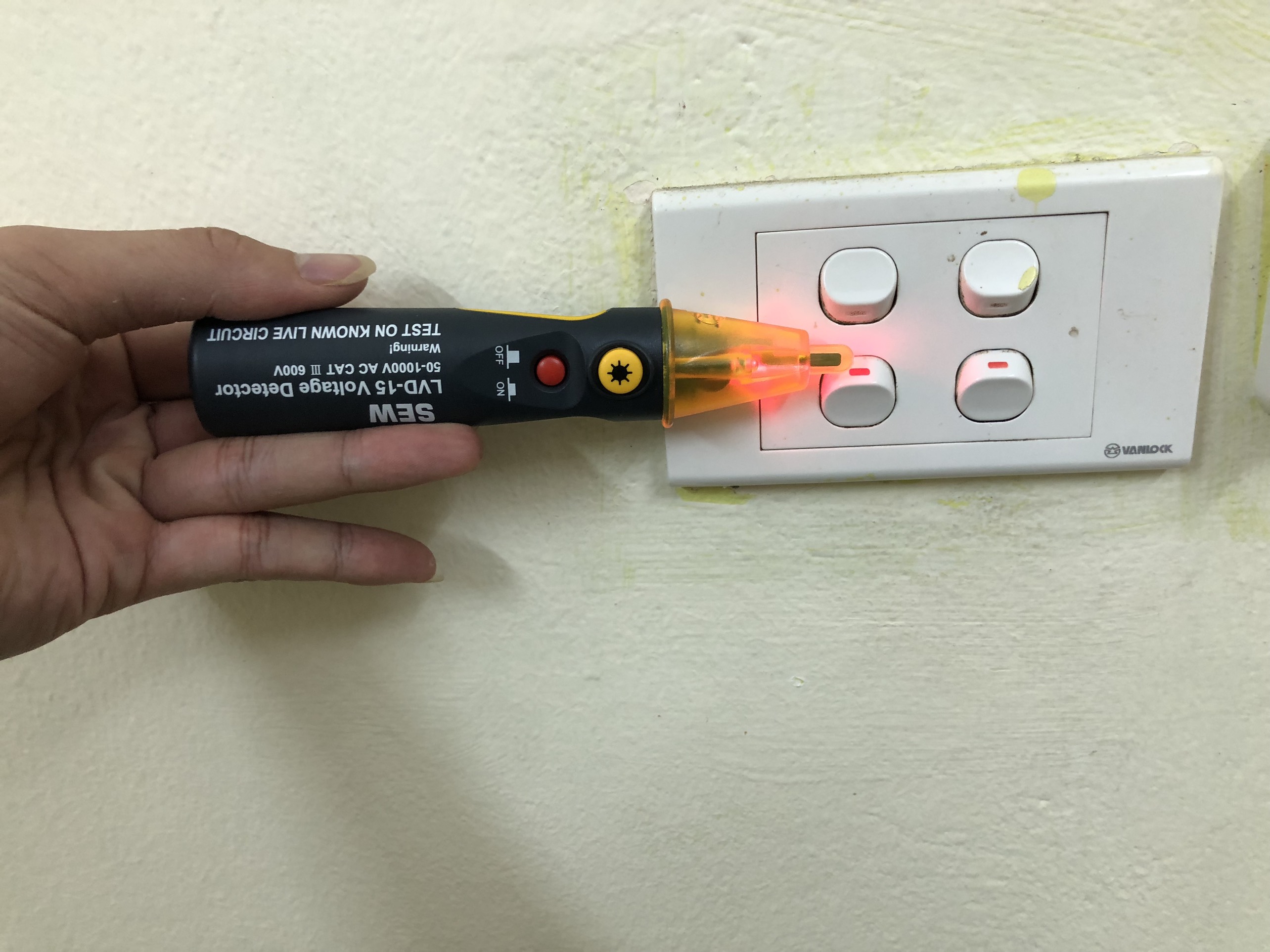 - Di chuyển bút thử điện dọc theo bề mặt để tìm ra vị trí của dây điện hoặc đường dây ẩn bên trong tường.