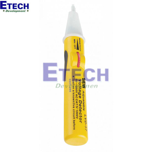 Bút thử điện áp thấp không tiếp xúc SEW LVD-17 (5V~1000V AC) sử dụng công nghệ bộ vi xử lý hiện đại để kiểm tra sự hiện diện của dòng điện AC. Khi phát hiện điện áp, thiết bị sẽ cảnh báo người dùng bằng âm thanh ngắt quãng và đèn LED nhấp nháy. Đây là loại bút thử điện thông minh để kiểm tra điện áp trong ổ cắm, thiết bị chiếu sáng, cầu dao, dây điện và thậm chí để tìm đứt dây, đảm bảo an toàn và tiện lợi trong mọi công việc liên quan đến điện.