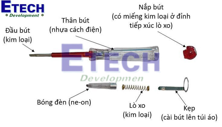 Cấu tạo bút thử điện gồm mấy bộ phận?