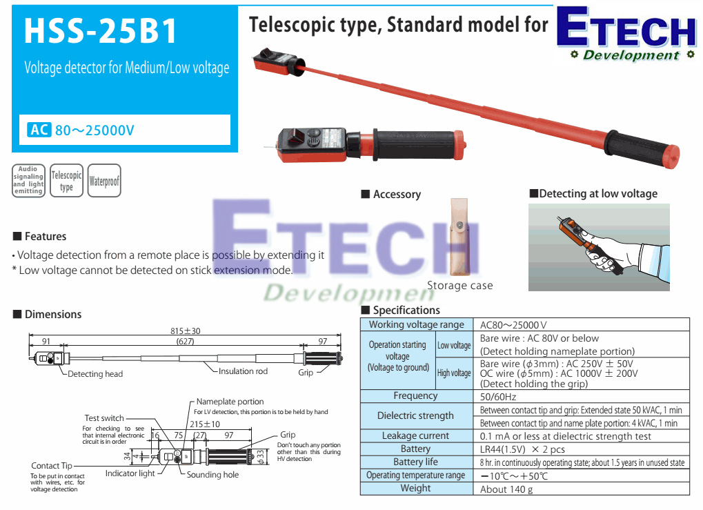 Thông tin chi tiết bút thử điện trung thế/ hạ áp HASEGAWA HSS-25B1 (AC80~25KV