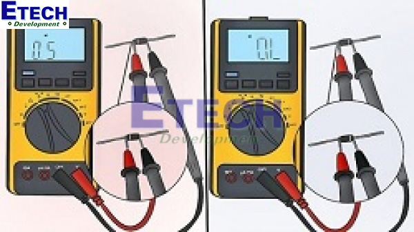 - Ngắt nguồn điện của mạch, kiểm tra pin đồng hồ và que đo còn tốt.