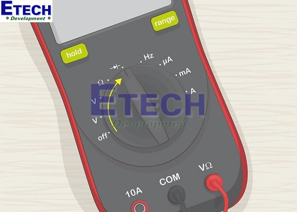 Bước 3: Xoay núm điều chỉnh của đồng hồ về chế độ đo diode, thường được ký hiệu bằng biểu tượng diode (một đoạn mạch có chiều dòng điện).