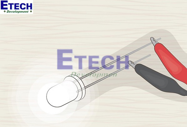 Bước 4: Kết nối hai dây đo với hai cực của đèn LED. Dây đỏ kết nối với cực dương (chân dài hơn), dây đen kết nối với cực âm (chân ngắn). Trong quá trình kiểm tra, lưu ý không để hai cực của đèn hoặc dây đo chạm vào nhau để tránh sai lệch kết quả.