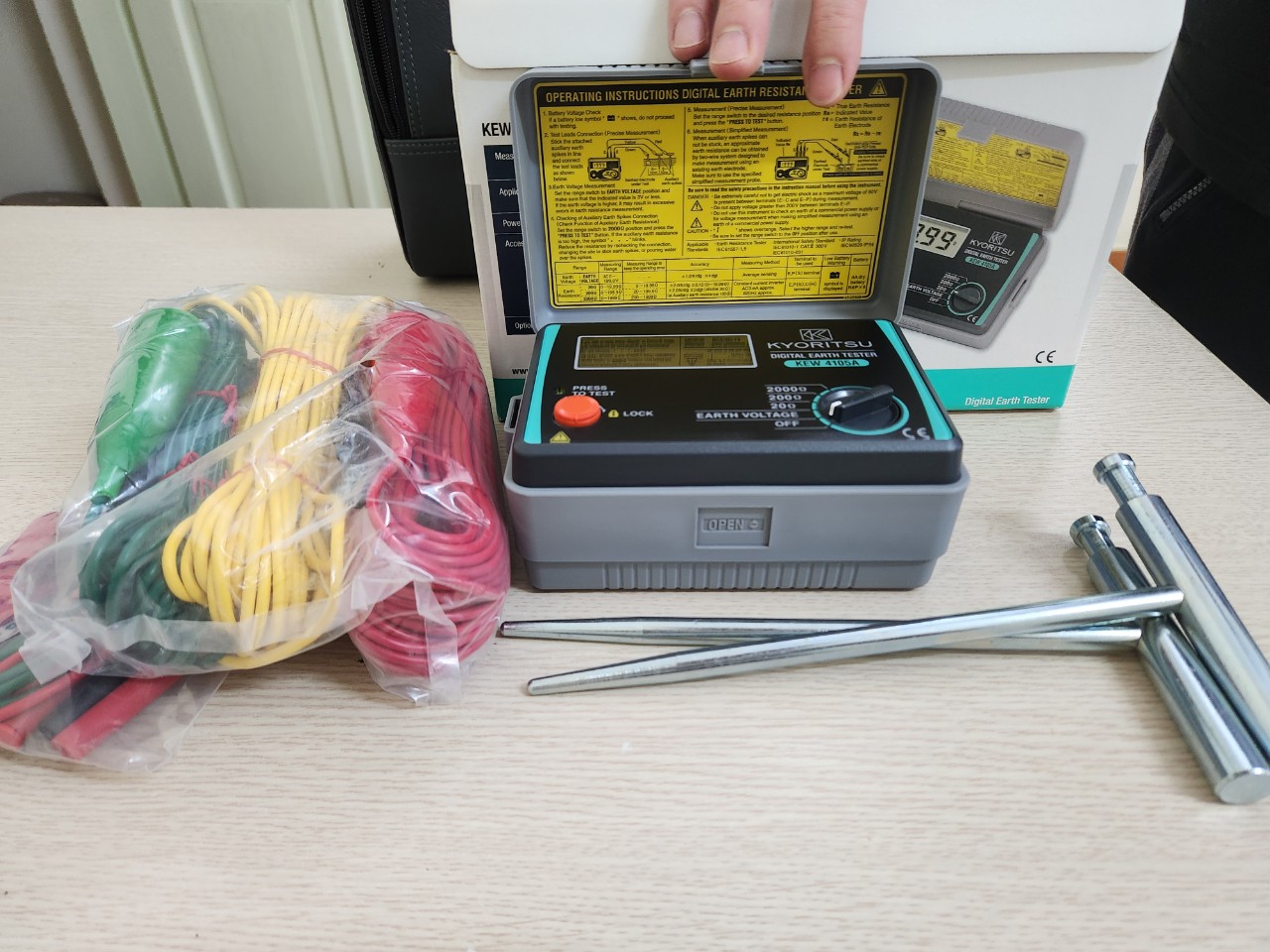 - Chuẩn bị thiết bị: Kiểm tra xem đồng hồ đo điện trở đất Kyoritsu có đầy đủ pin và phụ kiện không. Đảm bảo thiết bị trong trạng thái hoạt động tốt trước khi sử dụng.