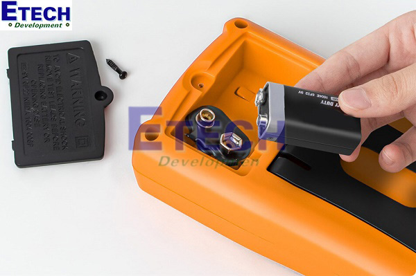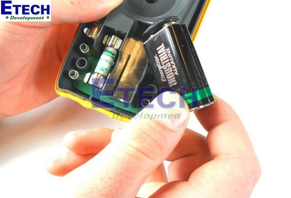 - Tắt nguồn, tháo dây đo và mở khoang pin như hướng dẫn ở trên.