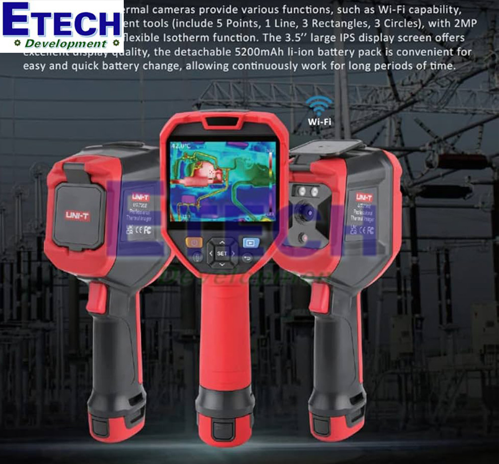 UTi730E là camera nhiệt tiên tiến có khả năng kết nối Wi-Fi. Màn hình hiển thị IPS 3,5 inch lớn của nó có thể hiển thị rõ ràng camera trực quan 2MP độ phân giải nhiệt 320×240 hoặc hình ảnh kết hợp của cả hai. Bộ pin rời của UTi730E cũng thuận tiện cho việc thay pin dễ dàng và nhanh chóng, cho phép làm việc liên tục trong thời gian dài.