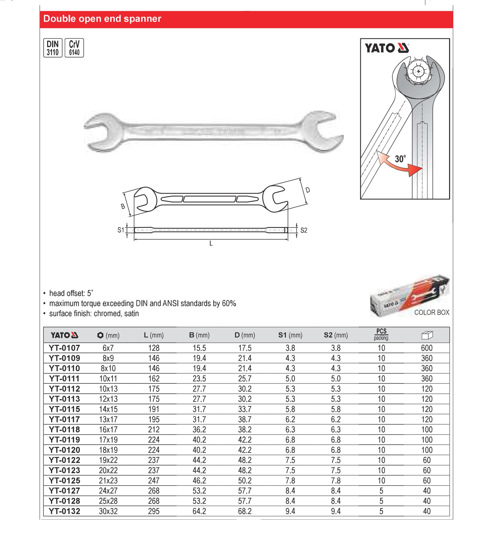 Cờ lê 2 đầu miệng (mờ) hệ mét 13x17mm YATO YT-0117