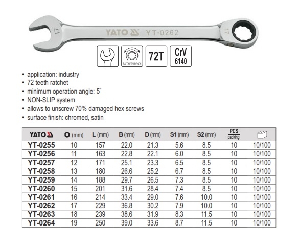 Cờ lê vòng miệng chống trượt tự động (mờ) 13mm YATO YT-0258