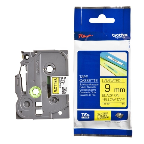 Nhãn in chữ đen nền vàng Brother TZE-621 (9mm x 8m)