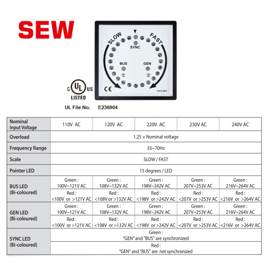 • 24 đèn LED trong một vòng tròn hiển thị góc pha và tần số sự khác biệt giữa 2 mạng