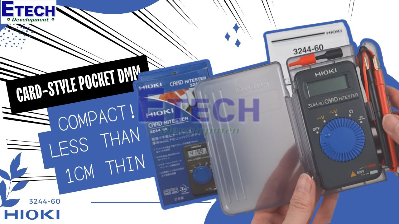 Đồng hồ vạn năng bỏ túi HIOKI 3244-60 là đồng hồ đo đa năng kiểu thẻ hiển thị số, được thiết kế nhỏ gọn và tiện dụng, lý tưởng cho việc bảo trì và thử nghiệm điện. Thiết bị nổi bật với đầu đo mạ vàng 15mm, giúp tăng cường độ nhạy và đảm bảo kết quả đo chính xác. Hãy cùng Etech Việt Nam tìm hiểu chi tiết về sản phẩm ngay dưới đây.