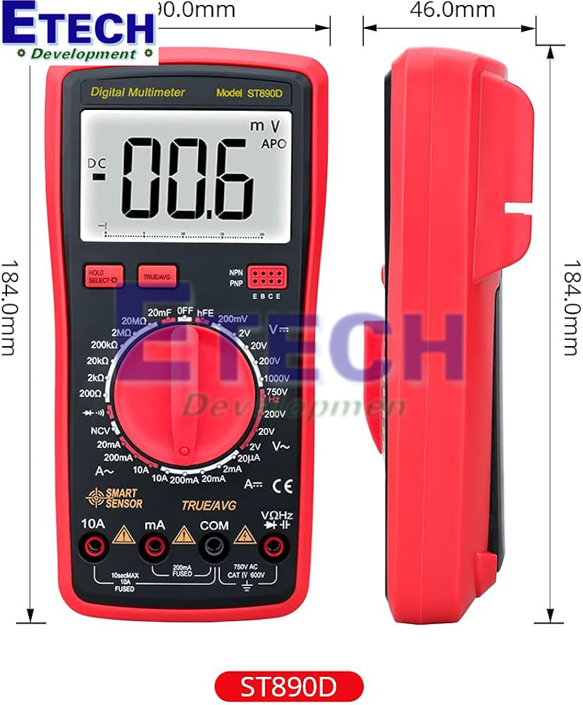 Đồng hồ vạn năng kỹ thuật số SMARTSENSOR ST890D là một thiết bị đa năng với hiệu suất ổn định và độ chính xác cao. Được trang bị màn hình LCD có đèn nền, cảnh báo áp suất cao và tính năng bảo vệ quá tải, SMARTSENSOR ST890D giúp đảm bảo an toàn và dễ dàng sử dụng. Đây là loại đồng hồ vạn năng phù hợp cho mọi nhu cầu đo lường từ phòng thí nghiệm, nhà máy đến sử dụng trong gia đình. Bài viết này sẽ cung cấp cho bạn cái nhìn tổng quan về các đặc điểm, tính năng và ứng dụng khi sử dụng đồng hồ vạn năng kỹ thuật số SMARTSENSOR ST890D.