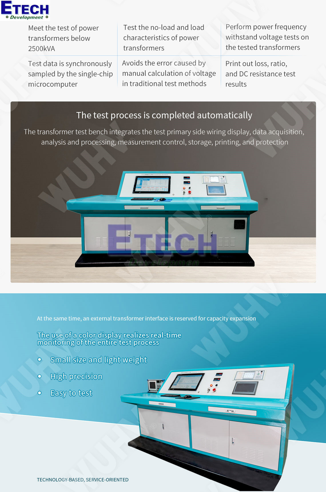 Hệ thống kiểm tra máy biến áp tự động UHV-315 được thiết kế với công nghệ hiện đại, đáp ứng đầy đủ nhu cầu kiểm tra toàn diện cho máy biến áp điện lực và phân phối dưới 2500kVA. Dưới đây là các đặc tính vượt trội: