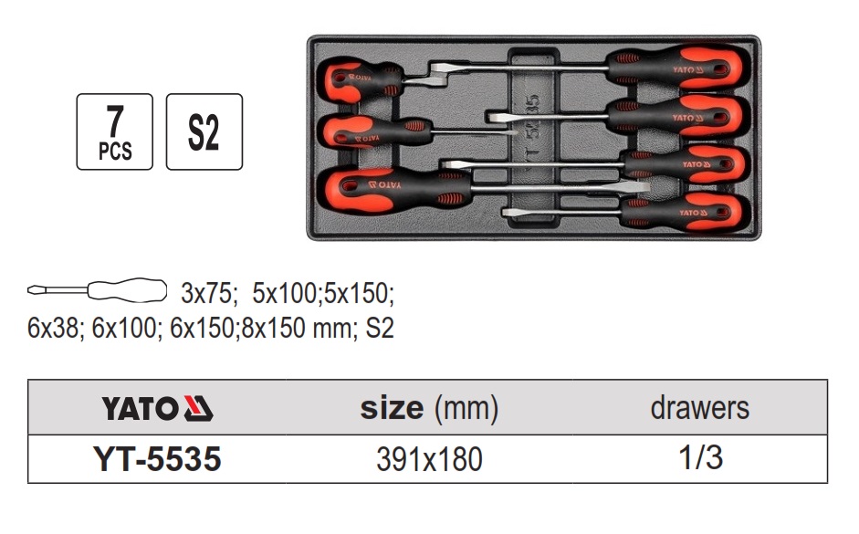 Khay bộ tua vít 2 cạnh 7 chi tiết có nam châm YATO YT-5535