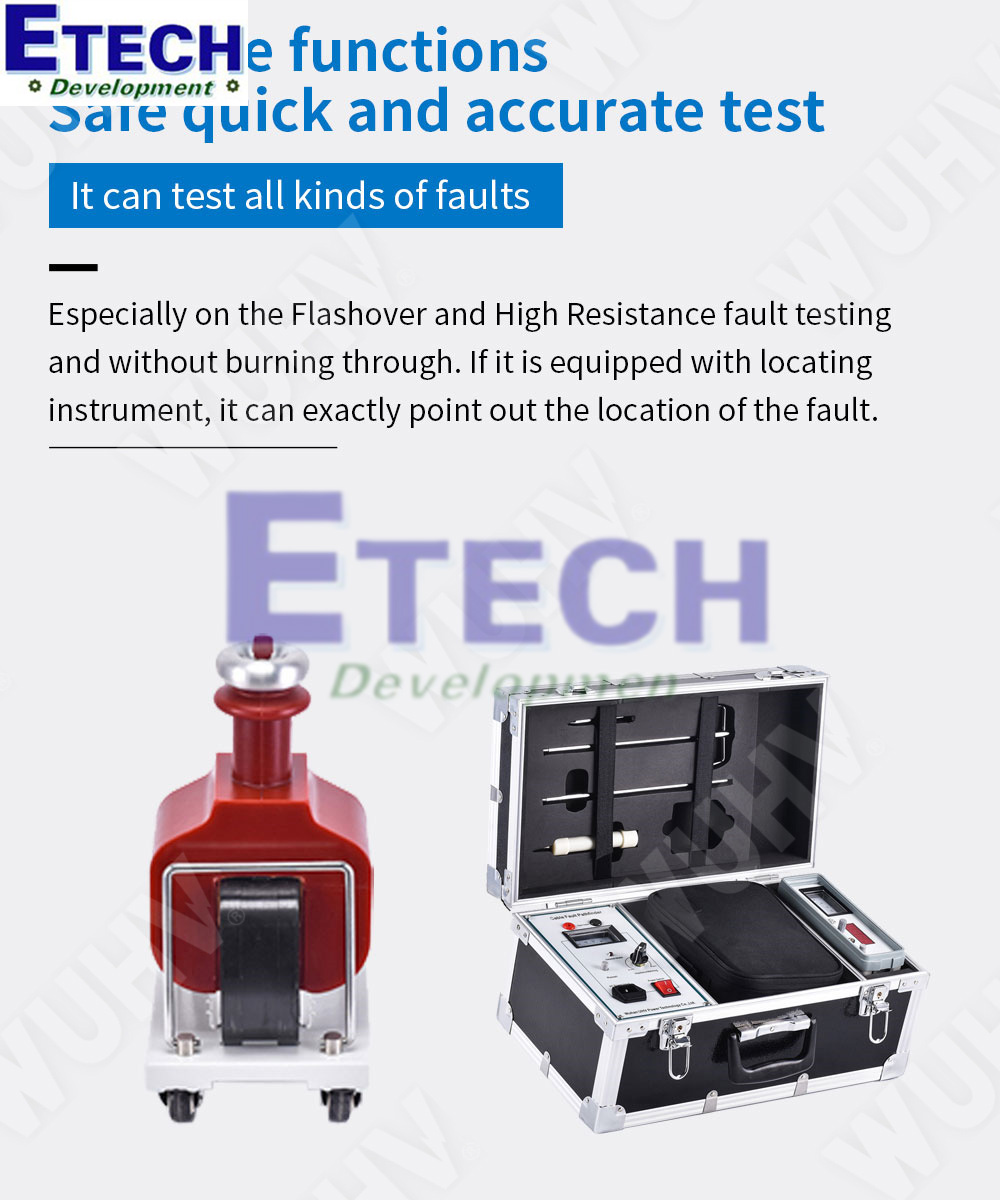 - Đầy đủ tính năng: Kiểm tra sự cố an toàn, nhanh chóng và chính xác; hỗ trợ phương pháp xung điện áp thấp và flashover cao áp.