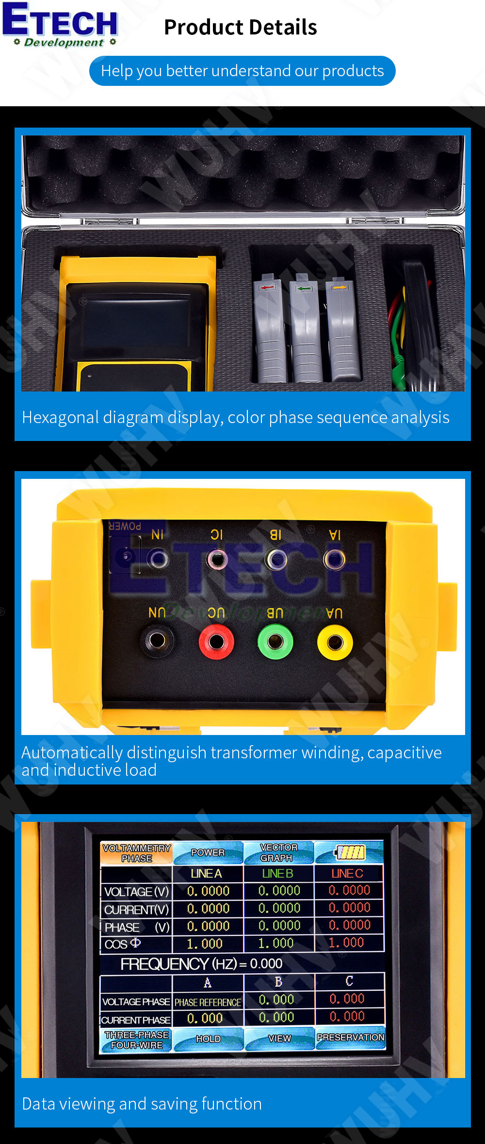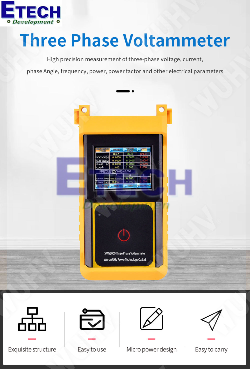 Máy đo điện áp dòng điện 3 pha SMG3000 Three Phase Voltammeter thực sự là một thiết bị toàn diện dành cho các kỹ sư điện đang tìm kiếm sự ổn định, độ chính xác và tốc độ đo tin cậy. Với khả năng theo dõi đồng thời nhiều thông số quan trọng trong hệ thống 3 pha, SMG3000 giúp người dùng đánh giá nhanh chất lượng điện, hạn chế tối đa nguy cơ quá tải hoặc mất cân bằng. Mọi thông tin về SMG3000 chính hãng quý khách vui lòng liên hệ trực tiếp Etech Việt Nam để được tư vấn miễn phí về cách sử dụng và báo giá mới nhất hiện nay.