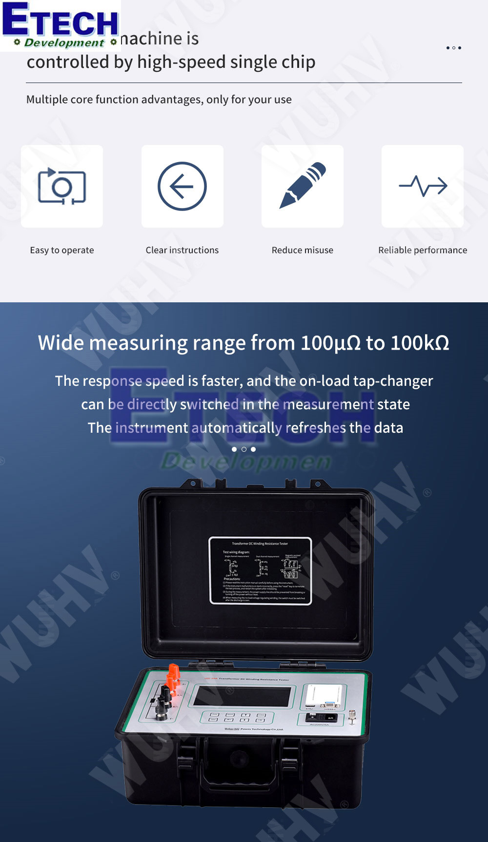 Nhằm rút ngắn thời gian đo và giảm khối lượng công việc cho nhân viên kỹ thuật, Wuhan UHV Power Technology Co., Ltd. đã phát triển máy đo điện trở cuộn dây máy biến áp UHV-20A.
