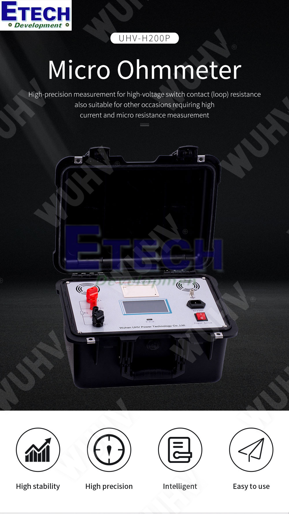 Máy đo điện trở tiếp xúc UHV-H200P Micro Ohmmeter chính là thiết bị được thiết kế và sản xuất đáp ứng hoàn toàn các yêu cầu khắt khe trên, là sản phẩm duy nhất hiện nay đạt độ phân giải 0.01μΩ và độ ổn định vượt trội, hiệu năng vượt xa các máy đo điện trở tiếp xúc dòng lớn nhập khẩu.