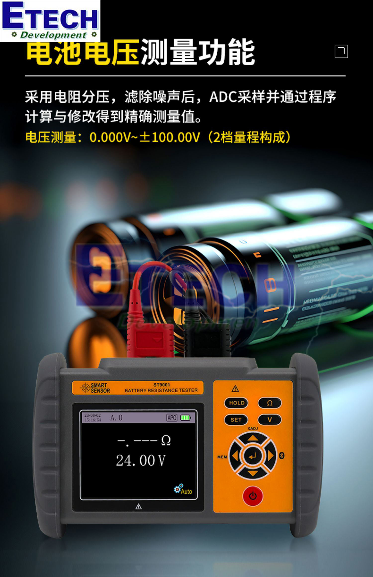 Smartsensor ST9001 là thiết bị đo nội trở ắc quy chuyên dụng, được thiết kế để kiểm tra nội trở, điện áp, và dung lượng của ắc quy, từ đó đánh giá mức độ lão hóa và hiệu suất. Với thiết kế nhỏ gọn, dễ sử dụng, ST9001 phù hợp cho nhiều ứng dụng như bảo trì ắc quy viễn thông, năng lượng mặt trời, xe điện, UPS, và các hệ thống lưu trữ năng lượng.