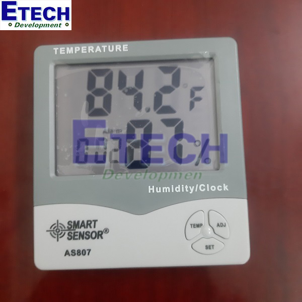Nhiệt ẩm kế Smartsensor AS807 là thiết bị nhỏ gọn, đa năng, tích hợp đo nhiệt độ, độ ẩm và đồng hồ báo thức, lý tưởng cho gia đình, văn phòng. Với màn hình LCD 75x54mm, sản phẩm hiển thị rõ ràng các thông số nhiệt độ, độ ẩm và thời gian, dễ dàng theo dõi. Smartsensor AS807 đo nhiệt độ phòng từ -40°C đến 70°C (sai số ±1°C) và độ ẩm từ 20%RH đến 90%RH (sai số ±5%RH), đảm bảo kết quả chính xác khi đặt trong không gian cần kiểm tra. Sử dụng 2 pin AAA, thiết bị còn có lịch (1999-2048), mang lại sự tiện lợi và hiệu quả trong việc quản lý môi trường sống với giá: 299.000 VNĐ.\