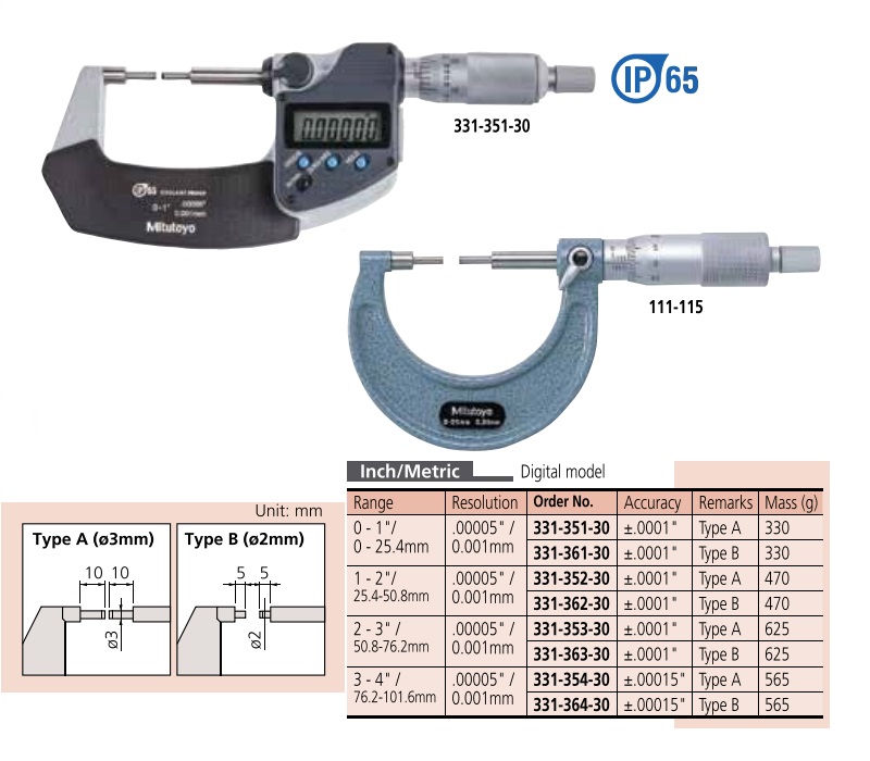 Panme điện tử đầu nhỏ Mitutoyo 331-354-30 (75-100mm/0.001)