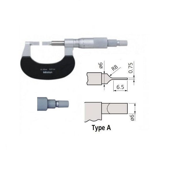 Panme đo ngoài cơ khí, đo rãnh MITUTOYO 122-102 (50~75mm/0.01mm)
