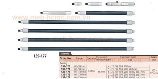 Panme đo trong cơ khí dạng ống Mitutoyo 139-176 (100-1700mm/ 0.01mm)