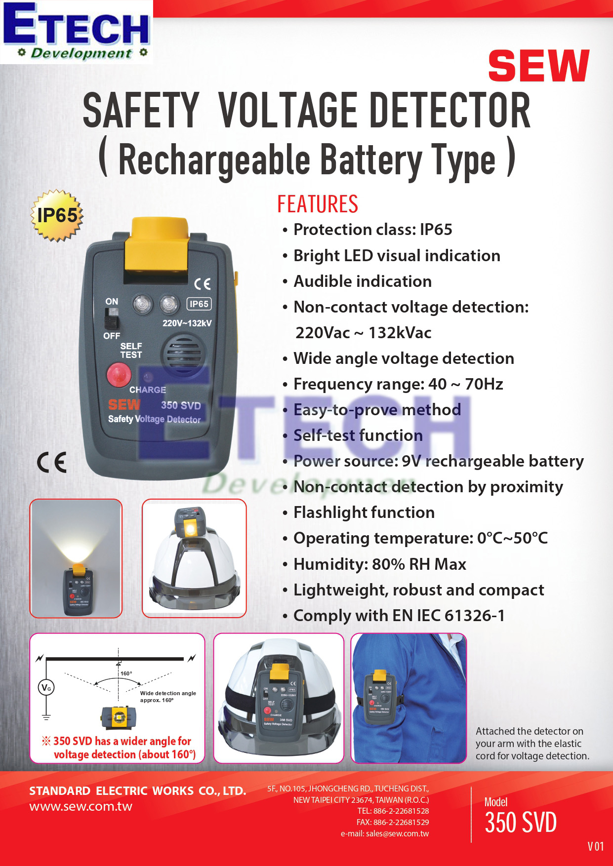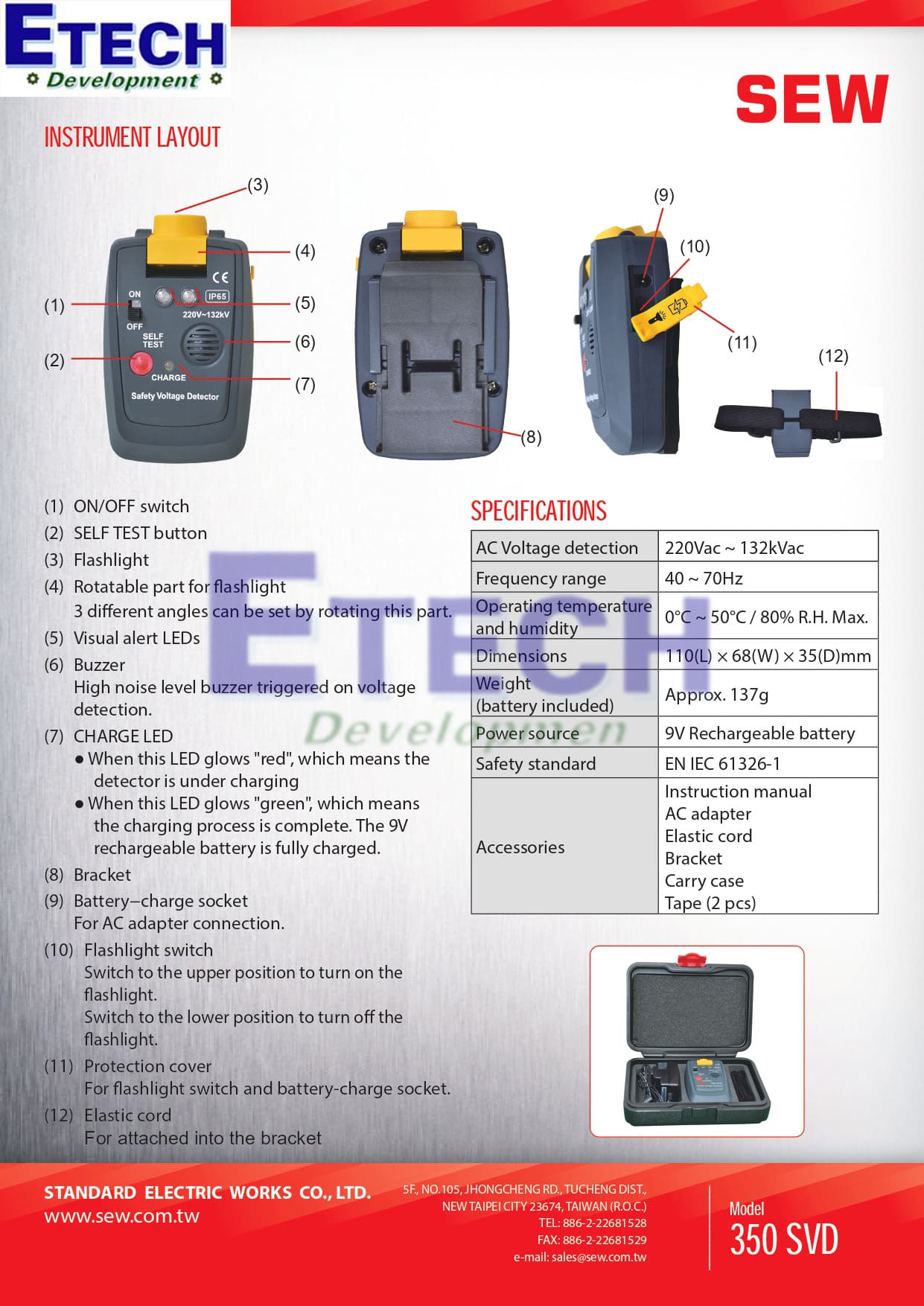 Thông số chi tiết thiết bị đeo trên người cảnh báo điện áp SEW 350 SVD (220Vac ~ 132kVac)