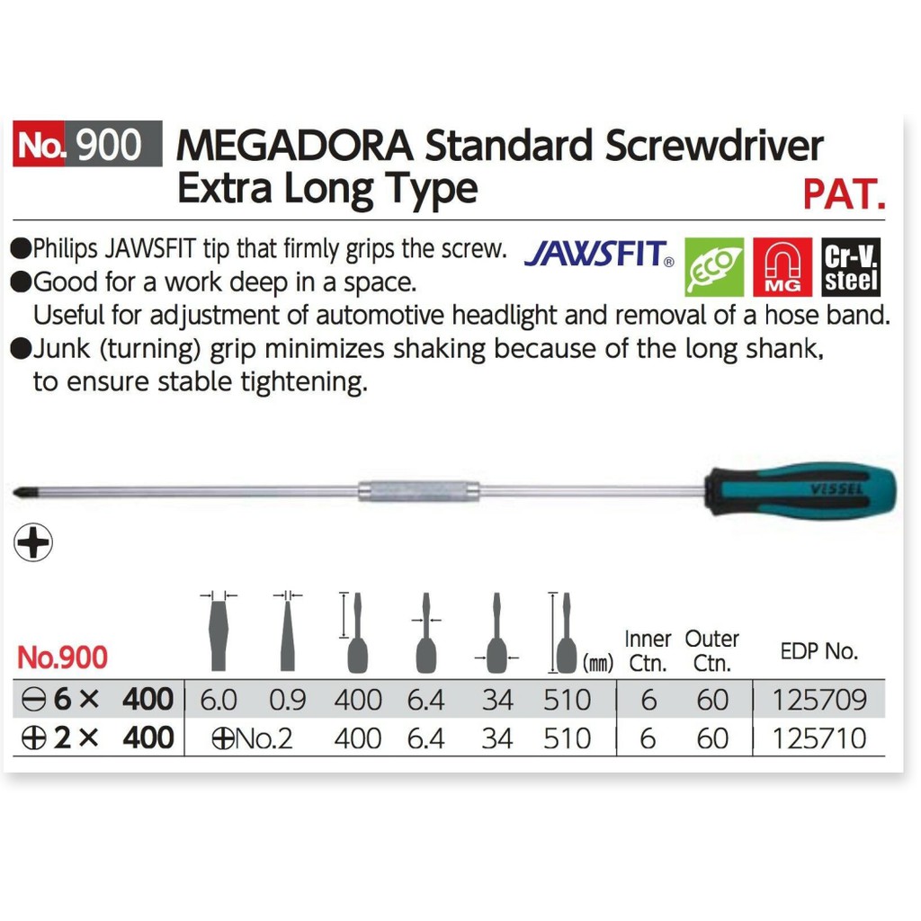 Tuốc nơ vít 2 cạnh thân dài Vessel 125709 900-6x400